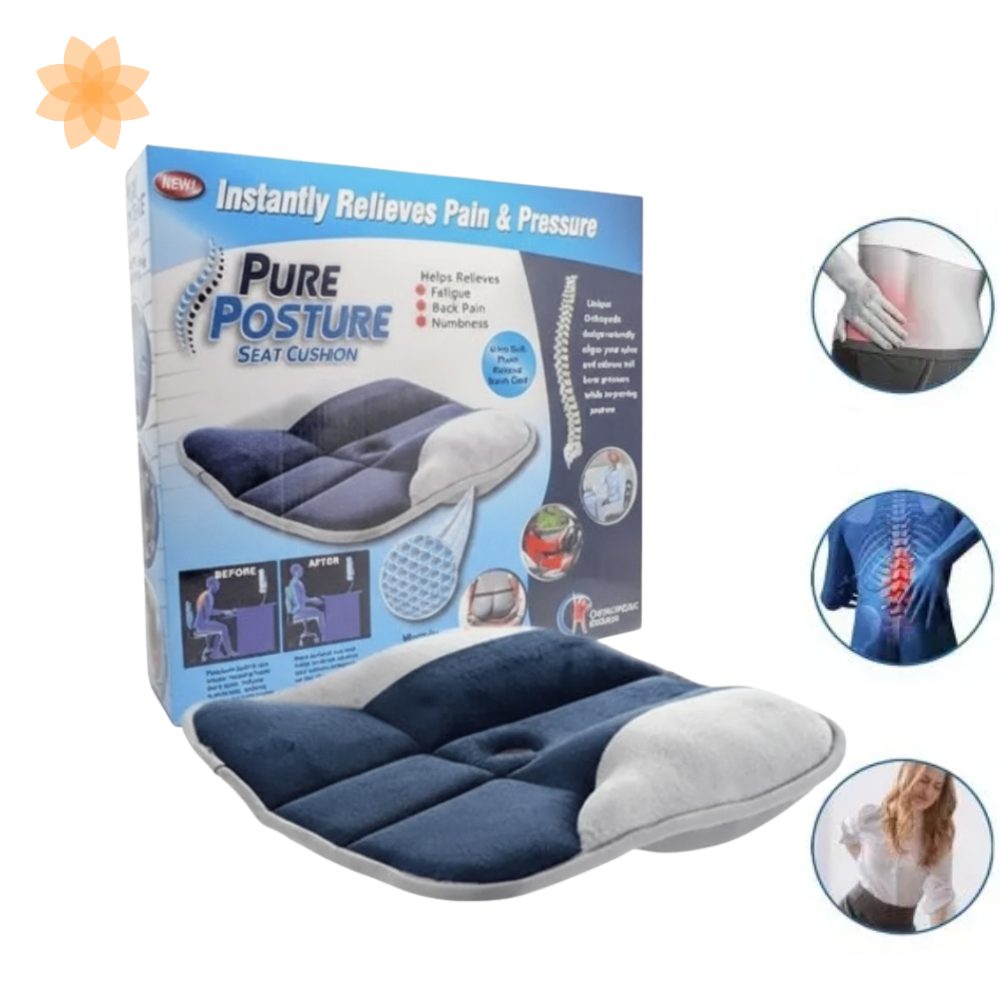 Este cojín ergonómico está diseñado para brindar una alineación correcta de la pelvis y la columna vertebral, reduciendo la presión sobre el núcleo y la parte inferior del cuerpo al sentarse por períodos prolongados.