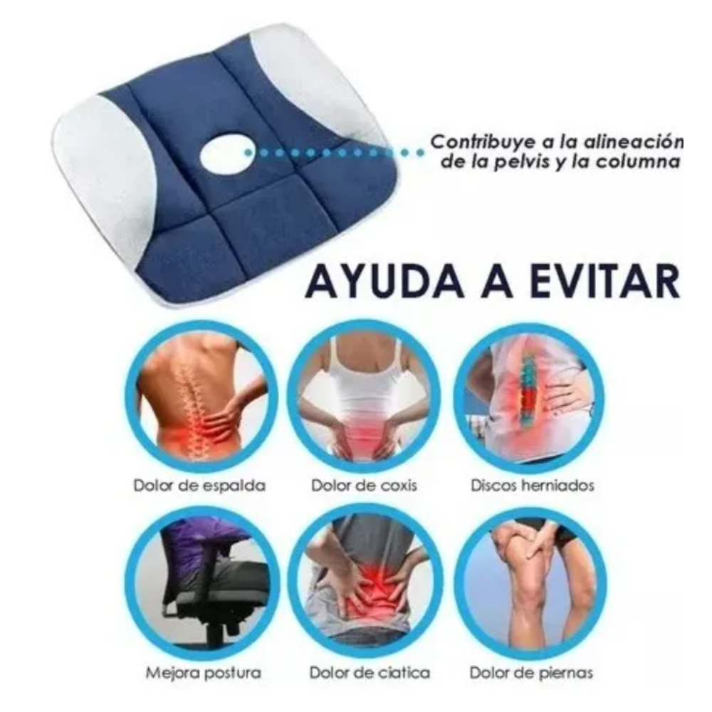 Su diseño tipo dona ayuda a prevenir y aliviar las molestias causadas por las hemorroides, la presión lumbar o el adormecimiento, favoreciendo una postura más saludable y cómoda.
