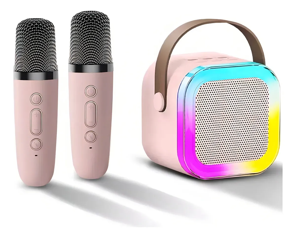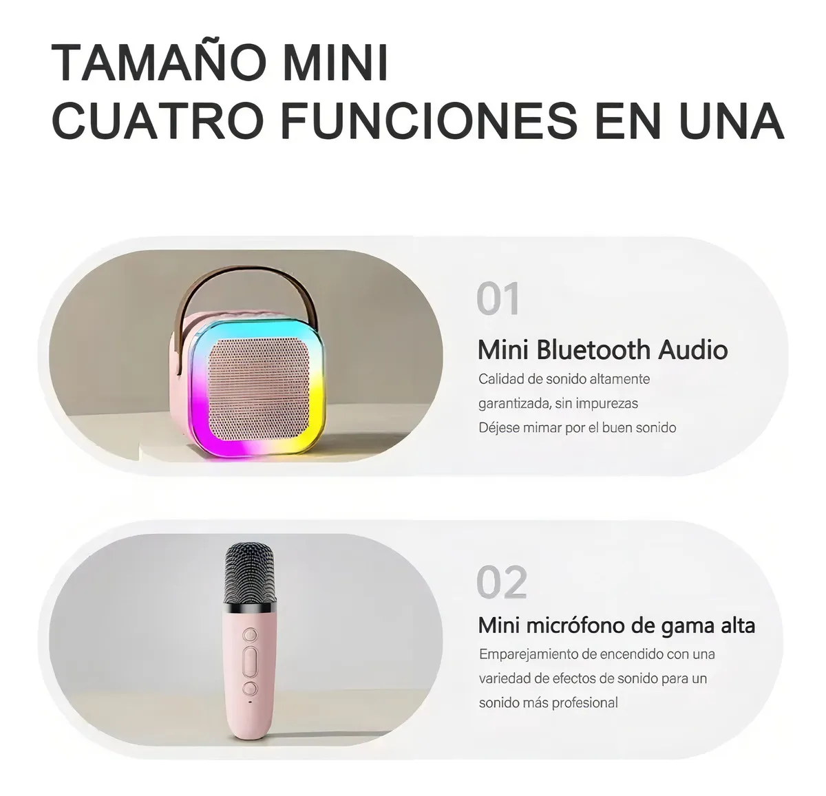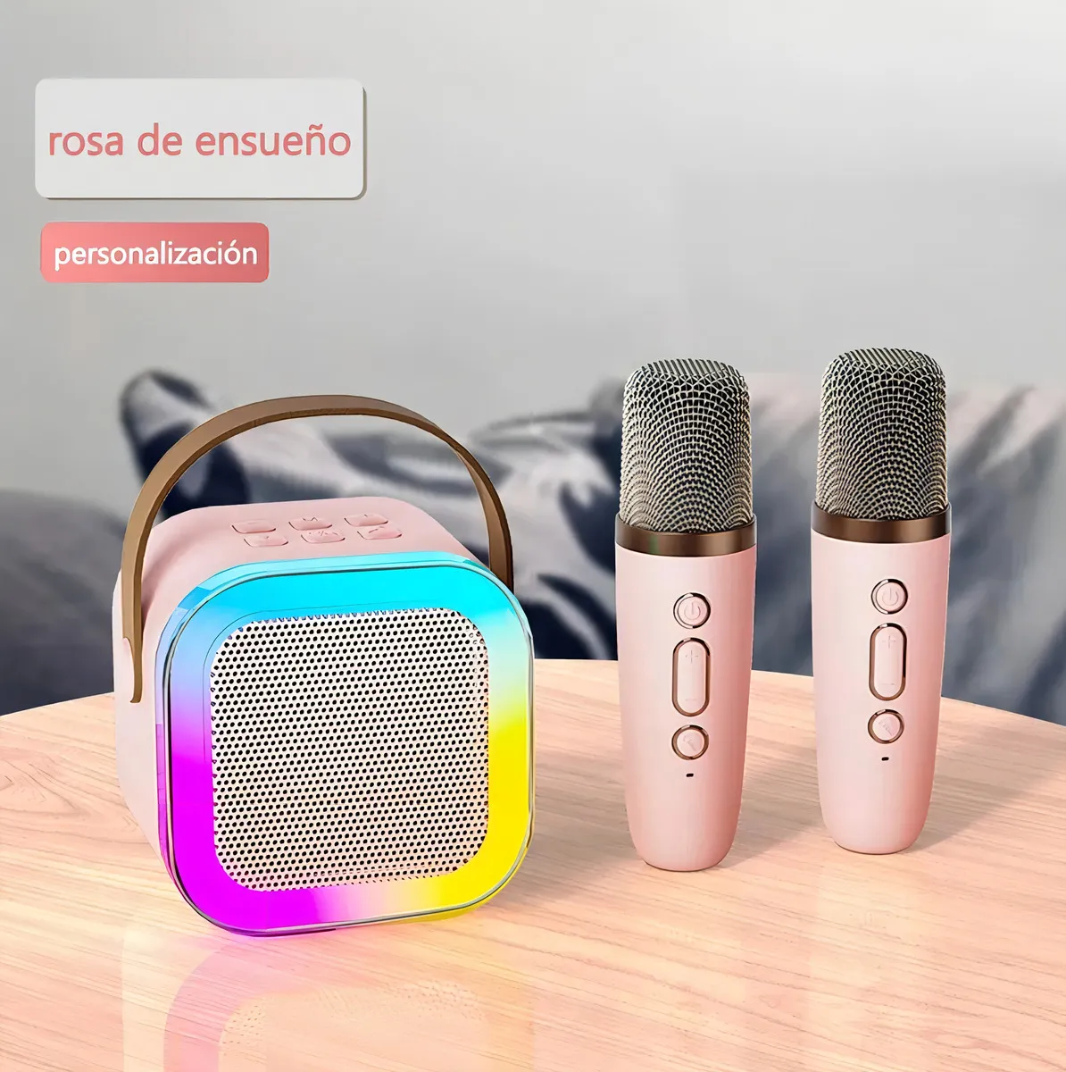 Juego de Karaoke para Niños y Adultos, Mini Bocina Portátil con Bluetooth + 2 Micrófonos Inalámbricos, Calidad de Sonido Excepcional con Luces Dinámicas, Regalo Ideal para Niños y Adultos