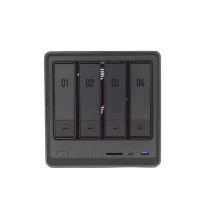 Las cuatro bahías SATA admiten hasta 24 TB cada una, y también puedes instalar dos unidades SSD M.2 NVMe compactas adicionales de hasta 8 TB cada una (para caché SSD o almacenamiento rápido adicional).