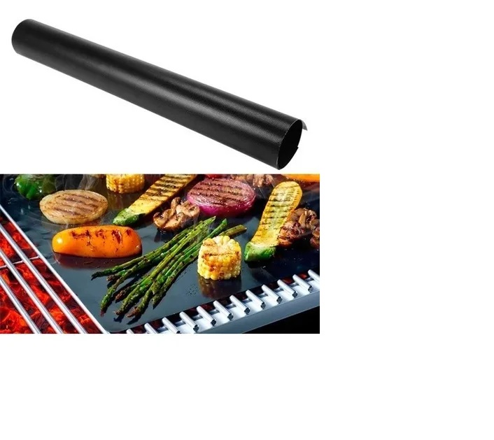 Tapete flexible para parrilla u horno hecho de fibra de teflón que resiste a altas temperaturas, permite asar alimentos o complementos evitando se peguen y se vayan entre los espacios, es reusable, fácil de limpiar y no tóxico.